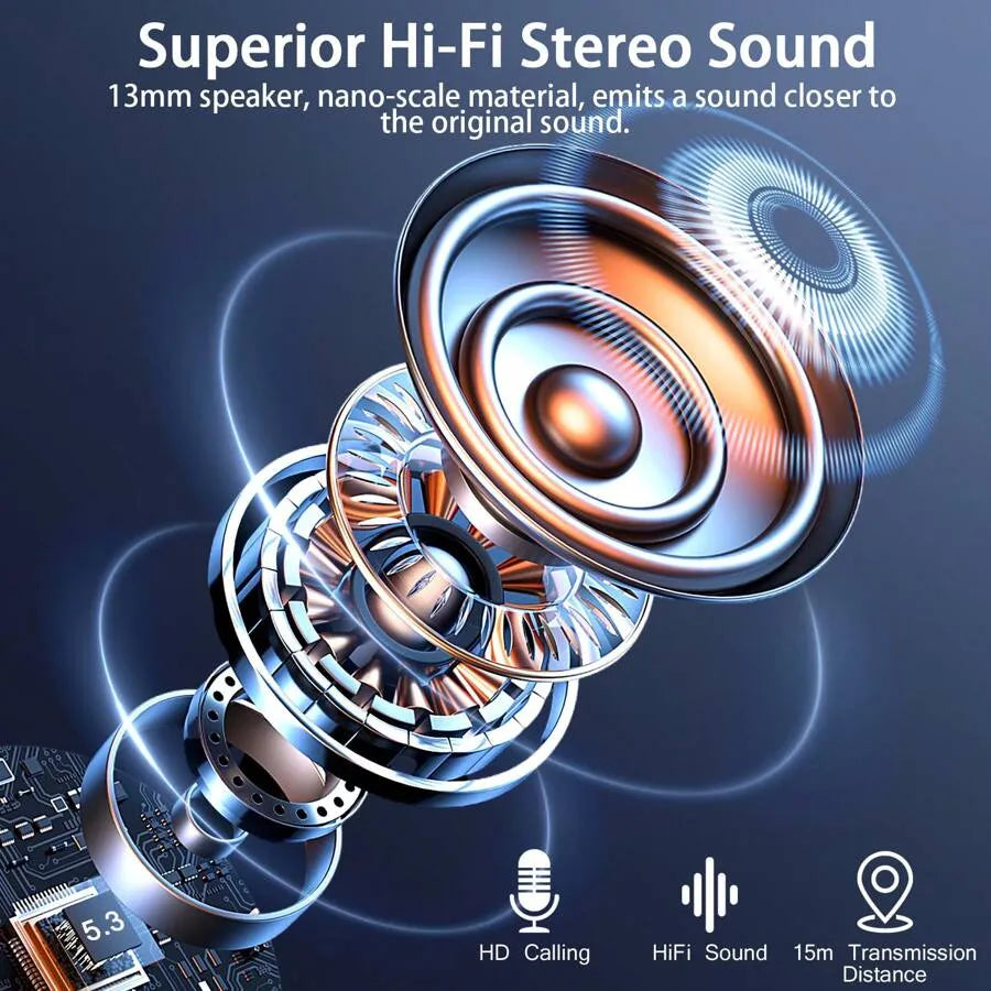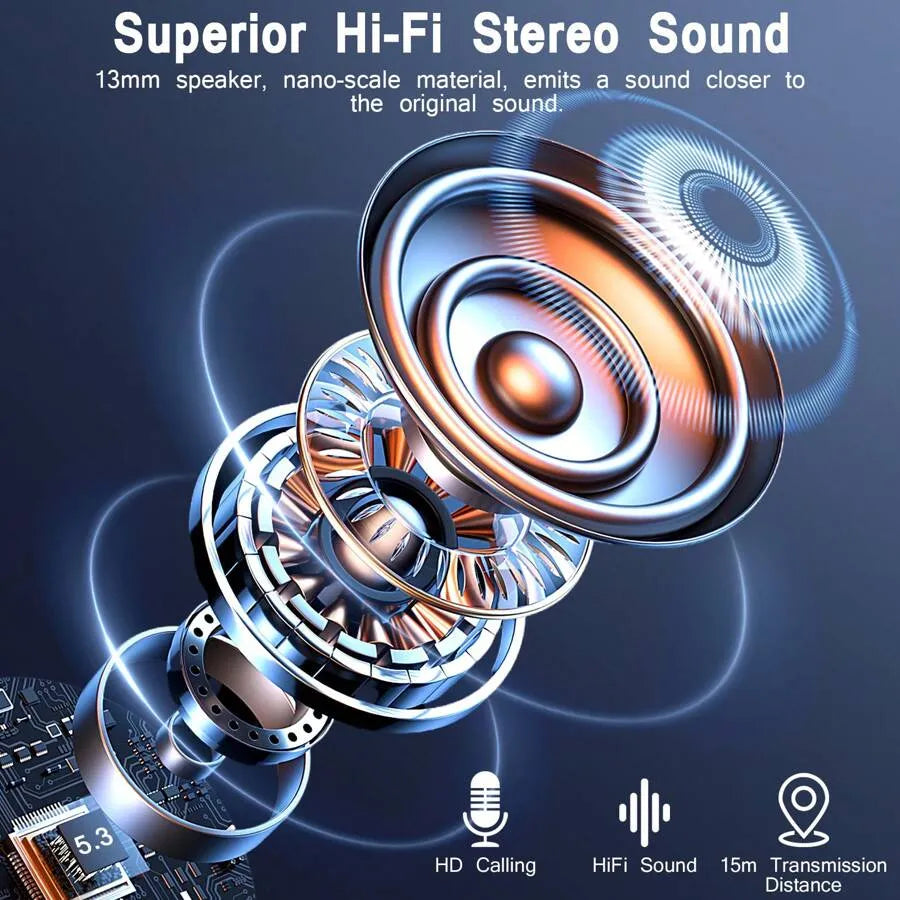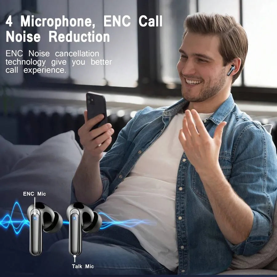 BK07 Wireless Bluetooth 5.4 Earbuds with LED Display, Touch Control & Noise Cancelling (Black)