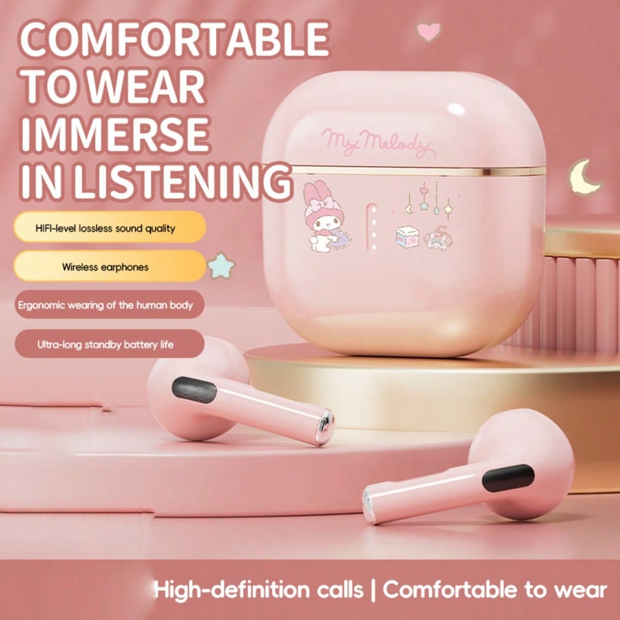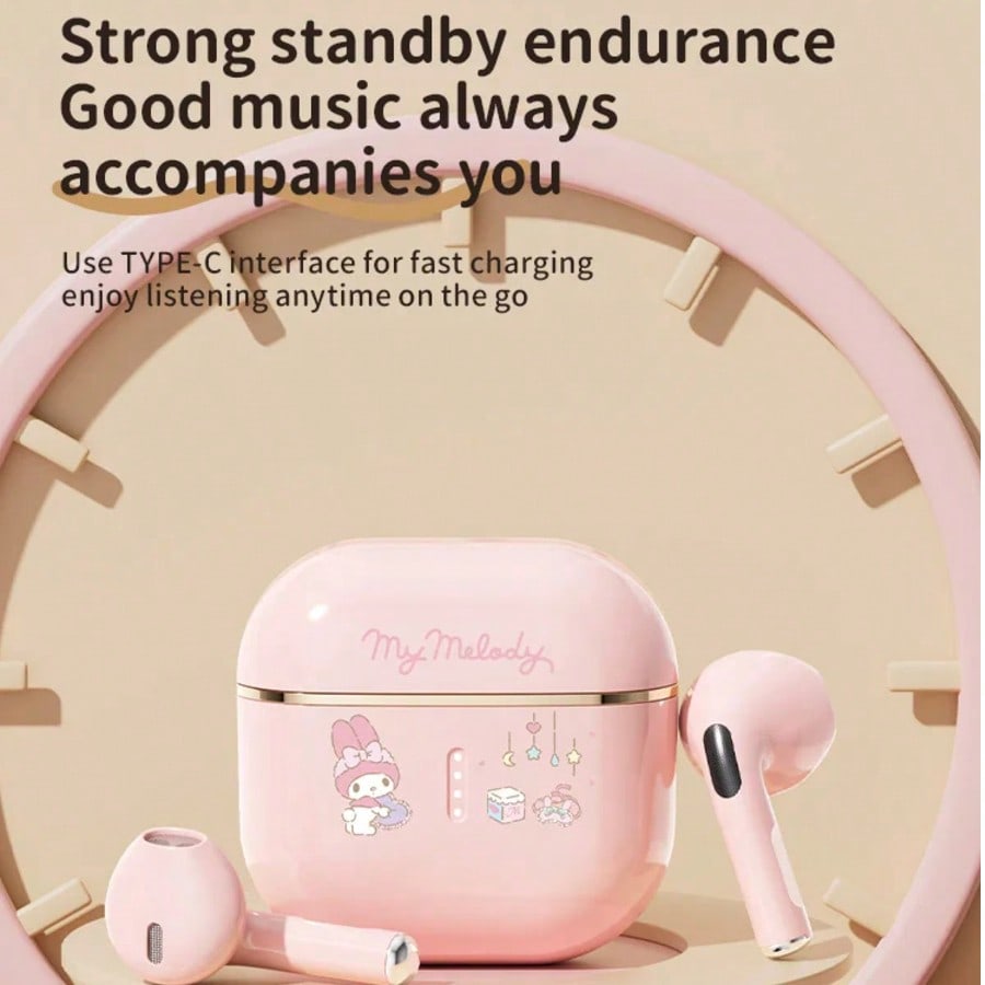 Hello Kitty TWS Wireless Earphones – Cute Sanrio Bluetooth In-Ear Headphones with Noise Reduction for Music & Sports Gift Idea